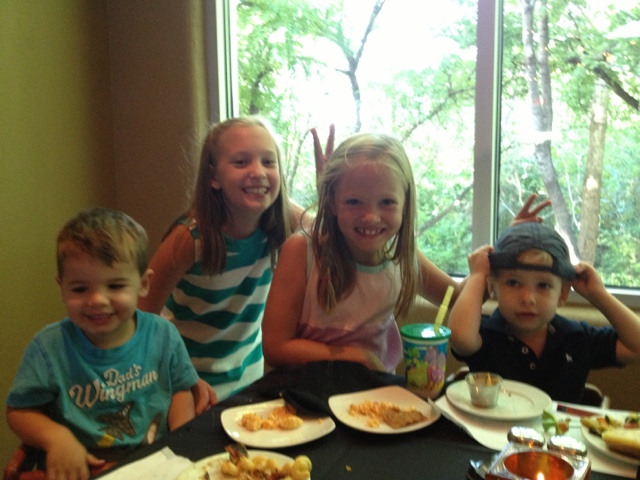 The girls loved the hotel because they got their own room with a "real" bed (usually we are in a suite and they are on the pull out couch). I had to take a picture of Lauren's "move in"-everything in it's place from the jacket to Caroline to the flashlight nearby ( :